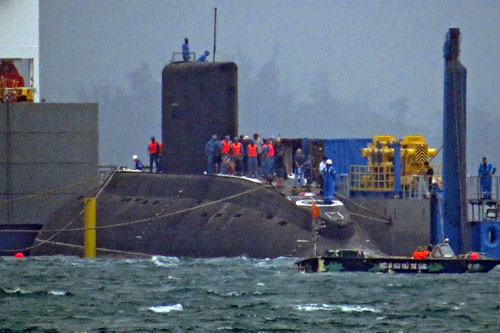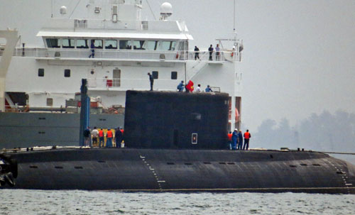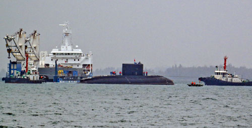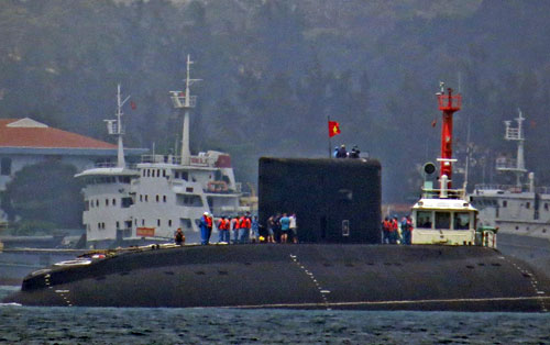 Từ 8g sáng nay, các chuyên gia kỹ thuật Nga và cán bộ Quân chủng Hải quân VN đã tiến hành bơm nước và chuẩn bị lai dắt tàu ngầm Kilo TP.HCM vào quân cảng Cam Ranh.