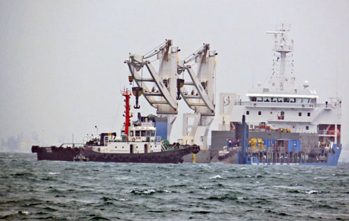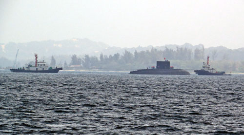 Tàu Azimuth lai dắt tàu ngầm kilo TP.HCM vào quân cảng Cam Ranh - Ảnh: Tiến Thành
