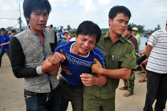 Con trai ngư dân Trương Đình Bảy khóc thảm thiết khi nhìn thấy thi thể cha