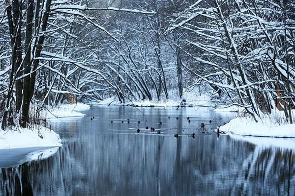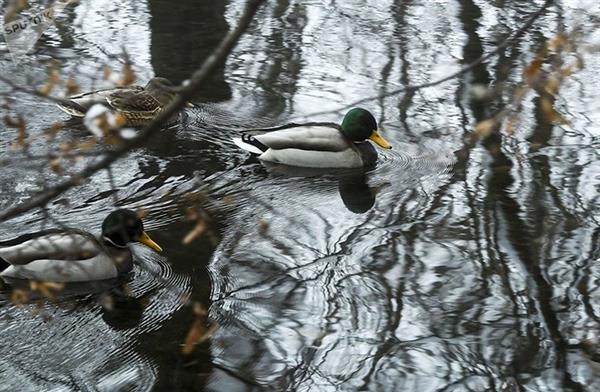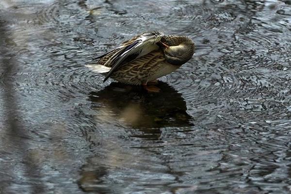 Vịt rỉa cánh ở Hồ Xanh giữa mùa đông.