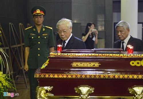 Nguyên Tổng bí thư Lê Khả Phiêu và Trưởng Ban tuyên giáo Trung ương Đinh Thế Huynh lần lượt chia buồn.