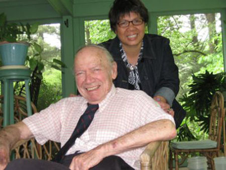 Nữ đạo diễn Lê Phong Lan và nhà báo, nhà sử học Mỹ Stanley Karnow trong quá trình thực hiện bộ phim tài liệu 12 tập "Mậu Thân- 1968"