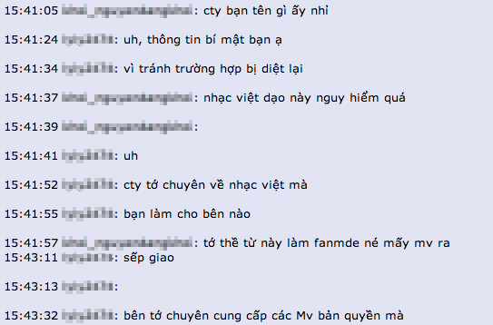 Một thành viên bị xoá video đã liên hệ trực tiếp với người có tên Nguyễn Thị Loan Anh và được biết nhân vật này thực hiện việc report theo "lệnh" của cấp trên trong công ty vì lí do "sếp không thích hoà bình, chỉ thích chiến tranh", tuy nhiên không cho biết tên cụ thể công ty vì lo lắng vấn đề "bị diệt lại". Qua đoạn chat được biết công ty này có trụ sở tại Hà Nội chuyên về nhạc Việt, cung cấp các MV bản quyền, trong đó có toàn bộ MV của ca sỹ Khắc Việt, Liêu Anh Tuấn,...