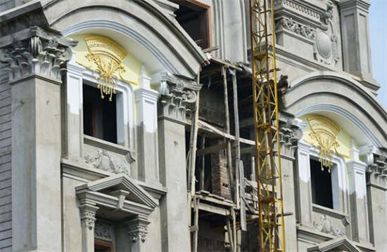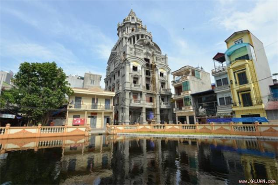 Tòa lâu đài của một đại gia buôn sắt thép trên phố Hoàng Quốc Việt (Hà Nội) khiến nhiều người phải trầm trồ. Tòa nhà có diện tích 400 m2 với 5 tầng lầu và một chóp nhọn tròn phía trên đỉnh và 6 con gà dát vàng.