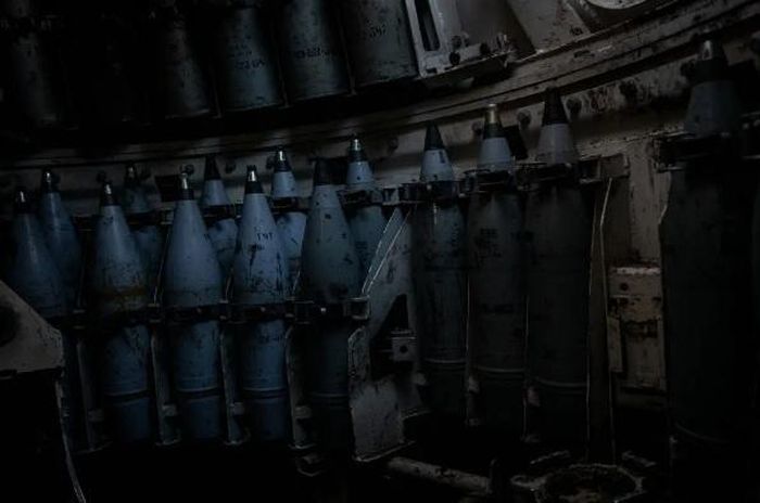 Đạn bên trong một khẩu pháo tự hành gần Kreminna, Ukraine. Ảnh: NYT.