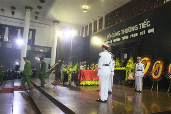 Lễ tang Thượng tướng Phạm Quý Ngọ được tổ chức theo nghi lễ Lễ tang cấp cao vào sáng nay (23/2) tại Nhà Tang lễ Quốc gia do Bộ Công an chủ trì.