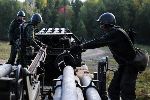 Quân nhân Nga chăm chú chuẩn bị cho cuộc tập trận phóng tên lửa của Quân khu miền Trung.