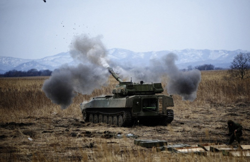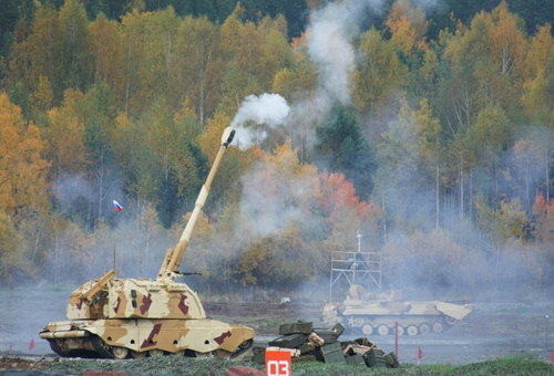 Pháo tự hành Msta-S chạy trên bánh xích bắn đạn cỡ nòng 152mm.