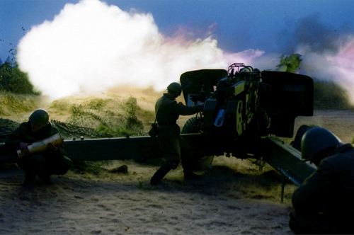 Binh sĩ thuộc Lữ đoàn pháo binh trong cuộc tập bắn tại vùng Kaliningrad.