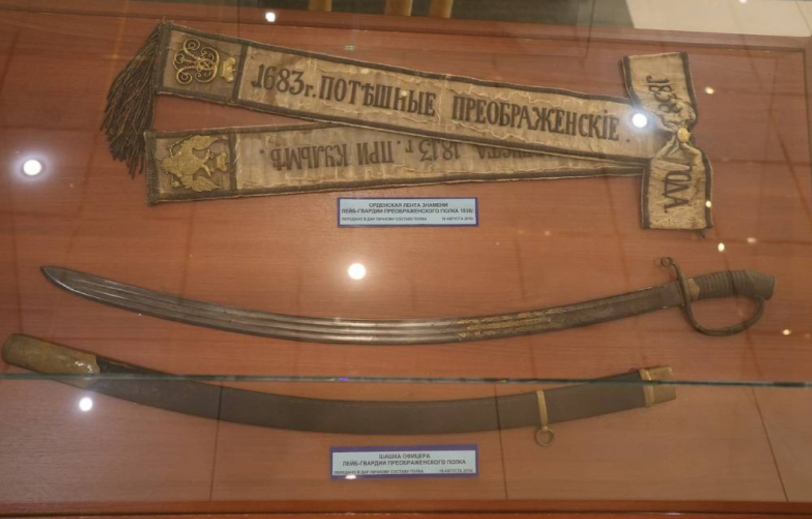 Thanh kiếm và dải băng lịch sử của trung đoàn Preobrazhensky. Ảnh: TASS