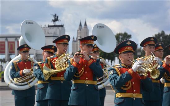 Vài hình ảnh trình diễn công cộng của các thành viên tham gia Liên hoan Quân nhạc Quốc tế 2017 vào sáng ngày 27/8 tại Công viên Chiến Thắng ở Moskva: