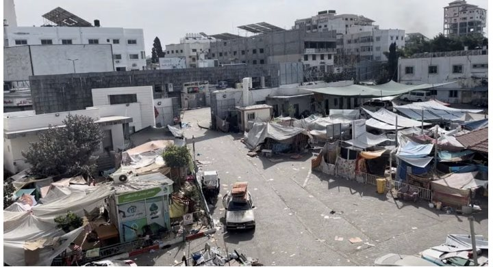 Lều và nơi trú ẩn được người Palestine sử dụng tại sân Bệnh viện Al Shifa ở Gaza.