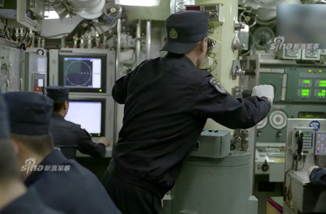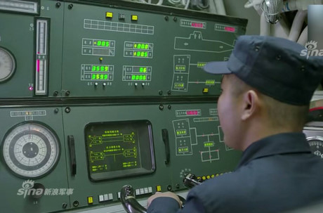 Trong ảnh có lẽ là khoang điều hành – chỉ huy của tàu ngầm tấn công Type 039 (NATO gọi là lớp Tống). Trang bị trông có vẻ rất hiện đại, có thể thấy nhiều cụm điều khiển lắp các màn hình LCD màu. Nguồn ảnh: Sina