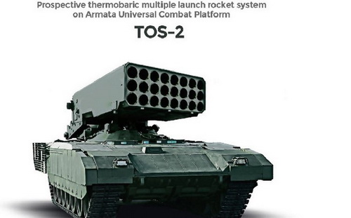Trên các trang mạng và diễn đàn quân sự nước Nga đã xuất hiện hình ảnh đầu tiên của hệ thống phun lửa hạng nặng (hay còn gọi là pháo phản lực nhiệt áp) TOS-2 Armata.