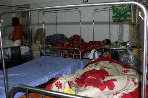 Những người bị thương trong vụ sập nằm la liệt ở giường bệnh.