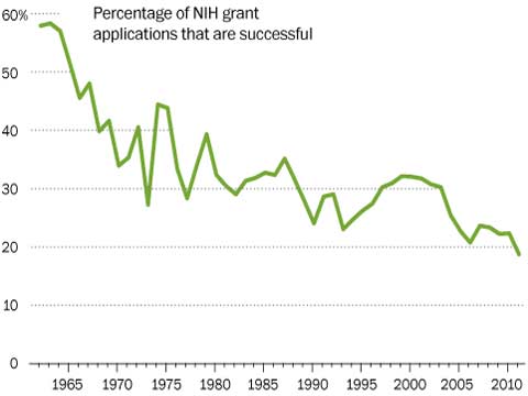 Trong những năm 1960, khoảng 2/3 công trình yêu cầu được NIH cấp tiền nhưng đến nay chỉ tỷ lệ nhận được tài trợ chỉ có 1/5 tổng công trình. Đáng lưu ý, các công trình được công bố trong tạp chí được ngưỡng mộ nhất như Tạp chí Nature đã trở thành một thần tượng đối với không ít nhà khoa học. Dù sai lầm song các trường đại học và các tạp chí nhiều khi lại không chịu nhận lỗi, khiến cho các nhà khoa học phát ‘sợ’.