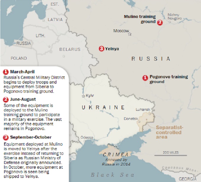 Tờ Washington Post dẫn nguồn từ công ty tình báo quốc phòng Janes, đơn vị đã theo dõi sự dịch chuyển của các thiết bị quân sự, binh lính Nga, và khai thác hình ảnh vệ tinh của công ty Maxar Technologies cho thấy quy mô tập trung quân sự của Nga ở các khu vực áp sát Ukraine.