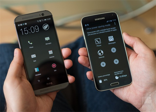 Pin luôn là nỗi ám ảnh của người dùng smartphone và tablet, HTC cũng như Samsung đã quá hiểu điều đó và khắc phục được phần nào hạn chế bằng bằng 2 chế độ siêu tiết kiệm pin trên Galaxy S5 và HTC One M8. 2 cơ chế tiết kiệm pin trên mỗi siêu phẩm có cách hoạt động khá giống nhau khi tắt mọi tính năng không cần thiết để giảm lượng năng lượng cần dùng xuống mức thấp nhất. Nhờ đó,Galaxy S5 và HTC One M8 vẫn có thể hoạt động trong nhiều giờ đồng hồ dù chỉ còn 10% pin.
