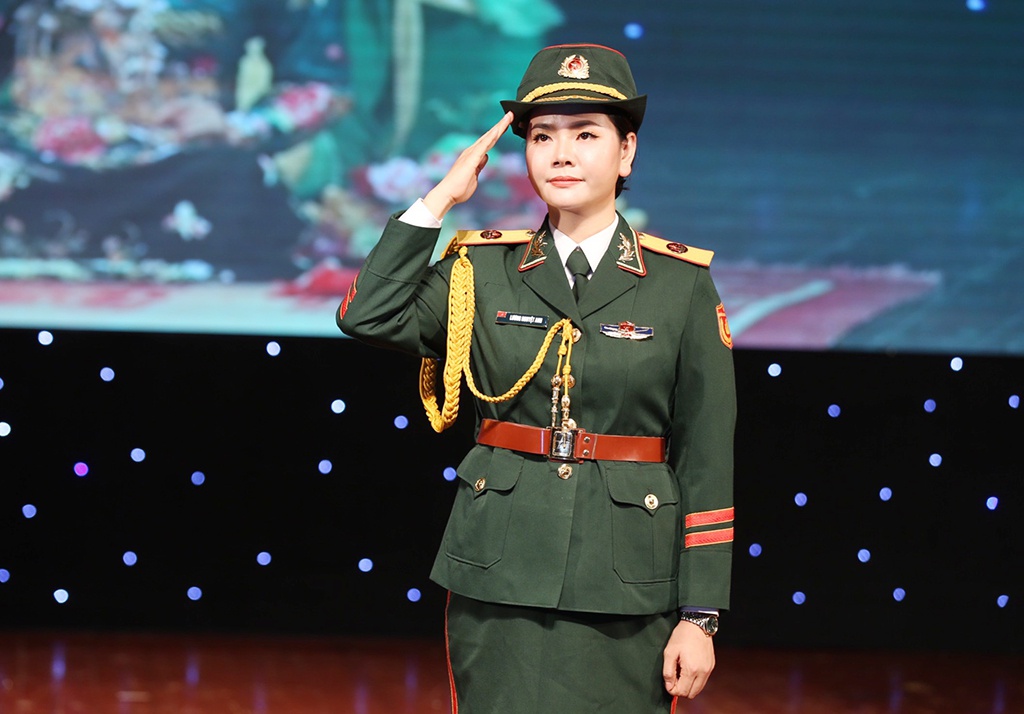Lương Nguyệt Anh hạnh phúc khi giành giải thưởng cho đội tuyển Văn hóa nghệ thuật của Quân đội Nhân dân Việt Nam. ẢNH: NVCC
