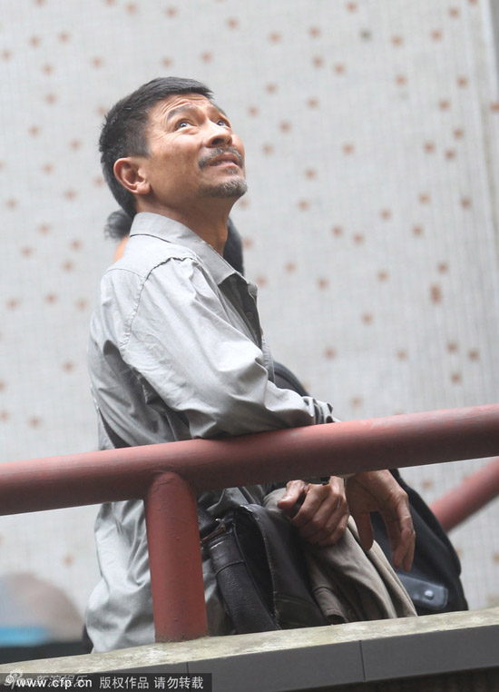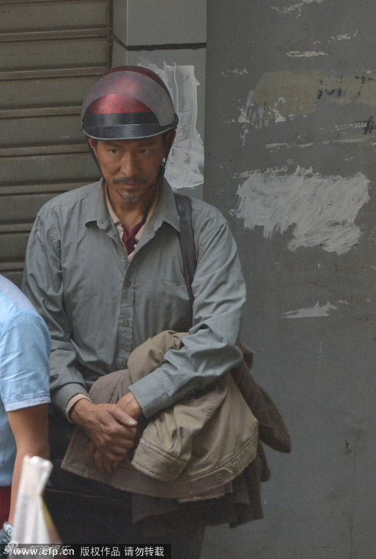 Lưu Đức Hoa ăn mặc lôi thôi, nhếch nhác, đầu tóc rối bù trông như ăn xin khi xuất hiện trên phố.