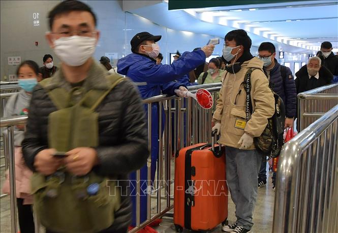 Kiểm tra thân nhiệt của hành khách tại nhà ga tàu hỏa ở thành phố Nam Xương, tỉnh Giang Tây, Trung Quốc ngày 6/2. Ảnh: THX/TTXVN