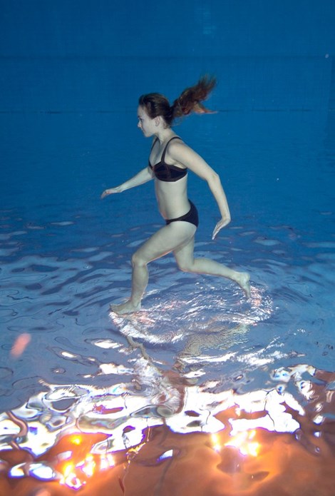 Lenka Tanner thực hiện màn đi bộ trên mặt nước