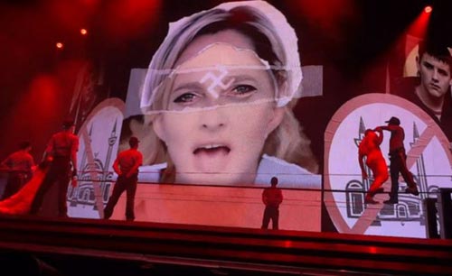 Trước đó, Đảng Mặt trận quốc gia Pháp cũng tuyên bố nộp đơn kiện Madonna vì cô đã tạo một “hình thập ngoặc” - hình tượng của Đảng Quốc xã (Nazi) - trước trán trong chuyến dừng chân tại Pari.