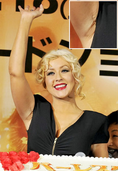 Nhiều ngôi sao trên thế giới cũng từng dính nghi án nâng ngực. Diva trẻ Christina Aguilera từng để lộ bằng chứng phẫu thuật ngực với vết sẹo nhăn nhúm dưới nách.
