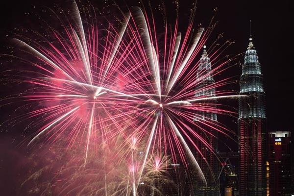 Tại Kuala Lumpur, pháo hoa mừng năm mới được bắn gần tháp đôi Petronas - công trình vốn được coi là biểu tượng của Malaysia. Ảnh: AFP