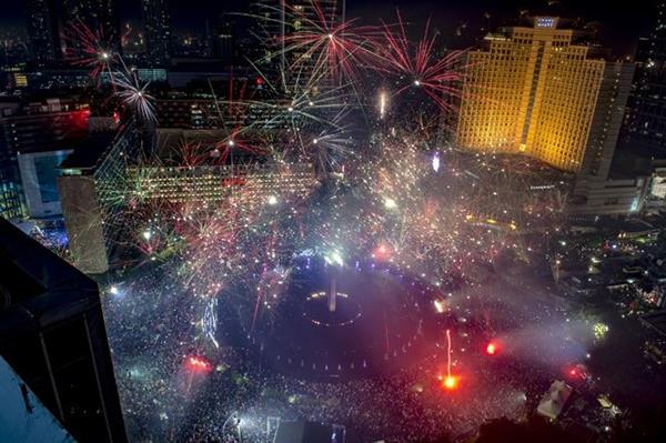 Biển người xem pháo hoa mừng năm mới tại trung tâm thủ đô Jakarta (Indonesia). Ảnh: AFP