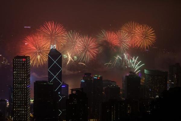 Pháo hoa sáng rực một góc trời Hồng Kông (Trung Quốc). Ảnh: AFP