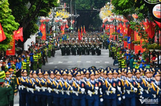 Sáng 30/8, buổi tổng duyệt diễu binh, diễu hành kỷ niệm 80 năm Cách mạng tháng Tám và Quốc khánh 2/9 diễn ra tại quảng trường Ba Đình và trên đường phố Hà Nội trong tiếng reo vui của hàng ngàn người dân.