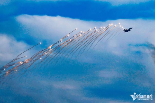 Trong đó, màn thả mồi bẫy nhiệt của những chiếc tiêm kích Su30-MK2 được nhiều người mong đợi chiêm ngưỡng nhất. Ảnh: Quyết Thắng.