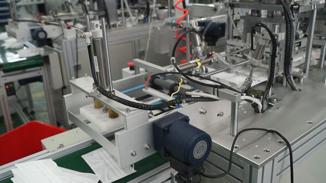 Dây chuyền này gồm những cấu kiện lắp rời, không phải một cái máy dài mấy chục mét hay ghê gớm gì đâu! Nó chỉ dài khoảng 1 đến 2 mét. Dây chuyền đấy về, chúng tôi đặt ngay ở nhà máy dược phẩm, nên đó đạt tiêu chuẩn vô trùng rồi, chúng tôi không cần phải làm thêm bất cứ thứ gì liên quan đến vấn đề đó nữa. Thứ hai, khẩu trang sản xuất theo dây chuyền đã được đăng ký chất lượng, nên chúng tôi cũng không cần phải xin thêm giấy phép gì nữa, cũng không cần phải chứng minh thêm vấn đề đấy nữa.