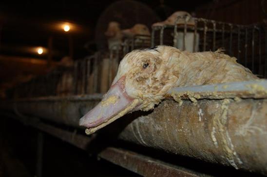 Ngỗng sẽ được nuôi nhốt trong lồng rất rất chật, không thể di chuyển để tránh tình trạng tấn công lẫn nhau. Chúng cũng không được tắm rửa bằng cách vầy nước như tập tính vốn có nên cơ thể bị bao phủ bởi một lớp dầu - vốn là thứ giữ cho bộ lông của ngỗng không thấm nước. Tất cả những gì chúng có thể làm là... cựa quậy, vẫy vẫy phần cánh và quay đầu sang hai bên.