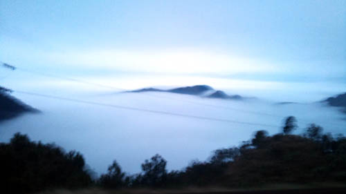 Bật đèn giữa ban ngày đường lên Mẫu Sơn.