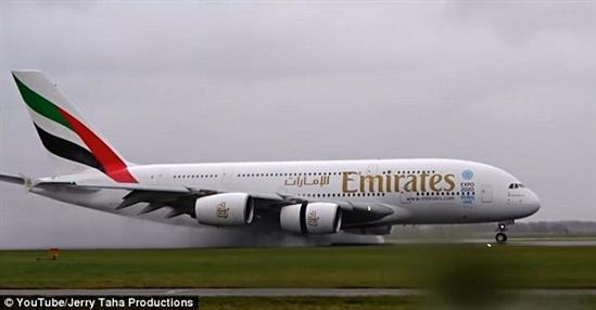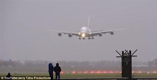Máy bay A380 trổ tài hạ cánh chiều ngang trong bão lớn