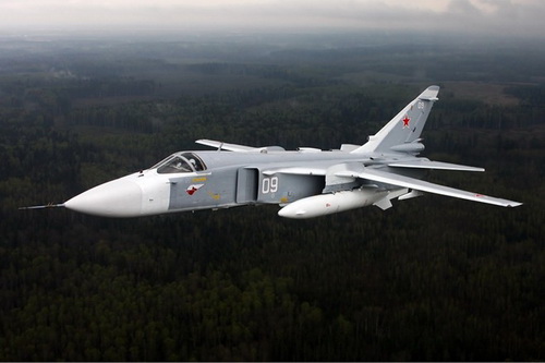 Su-24 Fencer là loại máy bay cường kích chủ lực của Không quân Nga, có thể mang theo 8 tấn bom đạn và đang làm nhiệm vụ không kích chống IS tại Syria.