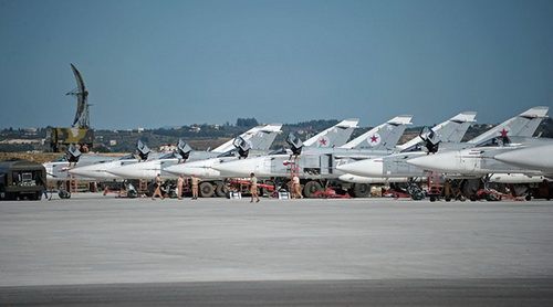 Từ ngày 30/9, Không quân Nga đã triển khai một số cường kích Su-24 cùng với Su-25, Su-34 và tiêm kích Su-30SM làm nhiệm vụ không kích IS tại Syria. Ảnh: Theaviationist