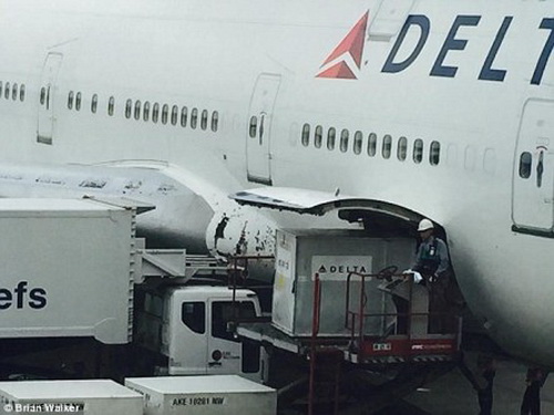 Chiếc máy bay của hãng Delta Airlines hành trình từ Detroit (Mỹ) tới Seoul (Hàn Quốc) đã gặp phải một trận mưa đá lớn khiến phần mũi, thân và cánh bị thủng, vỡ.