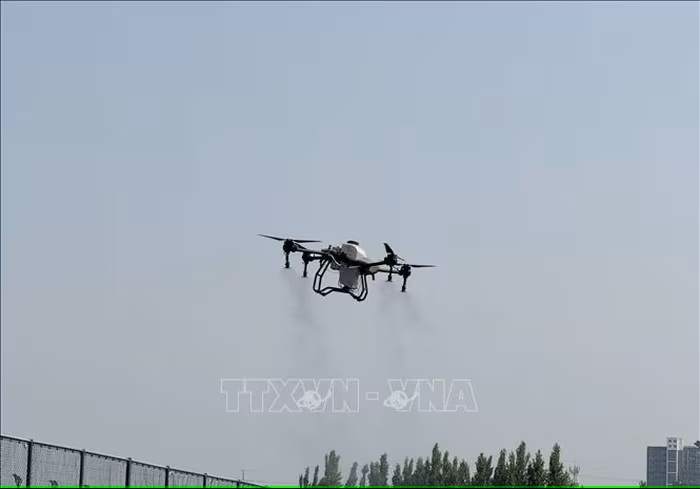 Máy bay không người lái phục vụ nông nghiệp đang được thử nghiệm tại Khu công nghiệp máy bay không người lái An Dương, tỉnh Hà Nam (Trung Quốc).