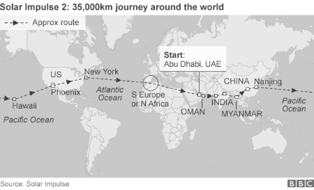 Hành trình bay của Solar Impulse-2 dài 35.000 km (Ảnh: BBC)