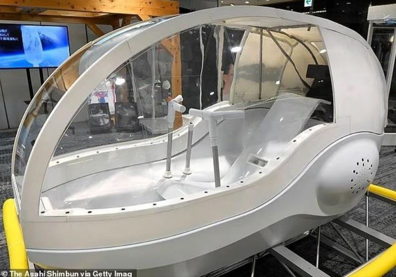 Một “máy giặt người” hình buồng lái máy bay chiến đấu vừa được bán tại Nhật Bản. Thiết bị dùng tia bong bóng siêu nhỏ để làm sạch toàn thân chỉ trong 15 phút. Giá bán lên tới khoảng 9,3 tỷ VND.