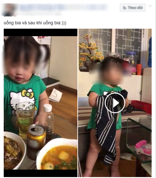 Được chị Nguyễn Phương T. (Thái Nguyên) đăng trên Facebook cá nhân, hai clip về cô con gái nhỏ đáng yêu trước và sau khi uống bia thu hút hàng trăm ngàn lượt, hàng ngàn bình luận và chia sẻ lại. Clip quay cảnh cô bé cầm ly bia uống nhưng sau đó bị say và ngồi trên giường cười nắc nẻ.