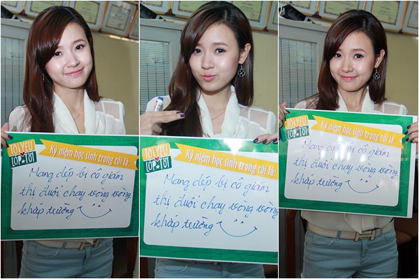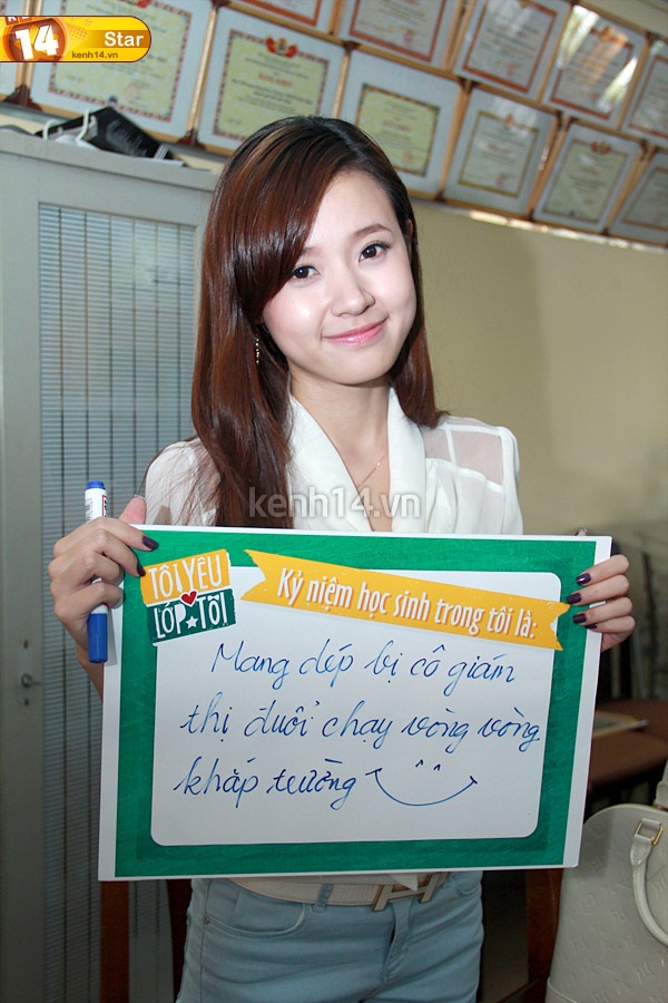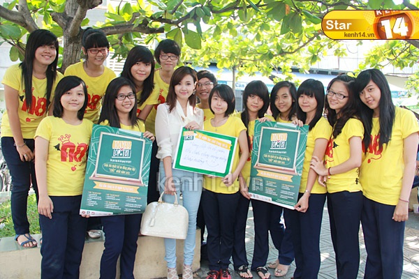 Ngay khi nhận ra "nữ hiệp Hoa Xuân" các teen lập tức phấn khích và nhanh chóng "tiếp cận" để xin chữ kí cũng như "pose" ảnh kỉ niệm cùng. Thậm chí, đến khi reng chuông vào lớp mà các bạn vẫn còn nấn ná không muốn rời đi nữa cơ! Trước tình huống bất ngờ bị "bao vây", Midu vẫn luôn nở nụ cười rạng rỡ và thân thiện kí tặng cho từng fan hâm mộ.