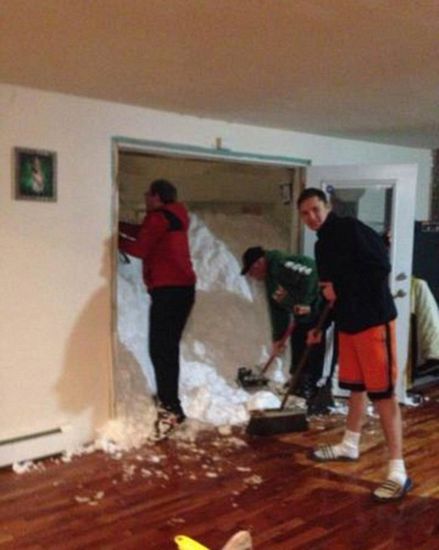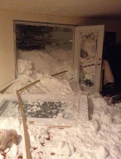 Tuyết tích tụ làm bật cửa một gia đình ở Cheektowaga, New York.