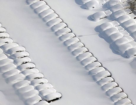Tuyết phủ trắng một khu vực đậu xe tại Orchard Park, New York.