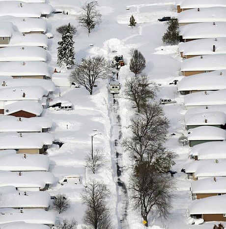 Tuyết phủ dày trên các mái nhà tại Depew, New York.