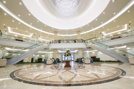 Huy hoàng, tráng lệ nhất là Trung tâm hội nghị Almaz Convention Center. Với thiết kế phù hợp cho những không gian rộng lớn và sang trọng, Almaz Convention Center có quy mô hơn 4.400m2, sức chứa tối đa lên đến hơn 1.600 người. Tùy vào nhu cầu, khách hàng có thể lựa chọn đa dạng diện tích các phòng sự kiện từ 70m2 - 1.100m2. Nội thất sang trọng, hệ thống âm thanh, ánh sáng và trang thiết bị hiện đại cùng đội ngũ nhân viên chuyên nghiệp, Almaz Convention Center thực sự phù hợp cho những hội nghị tầm cỡ quốc gia và quốc tế.