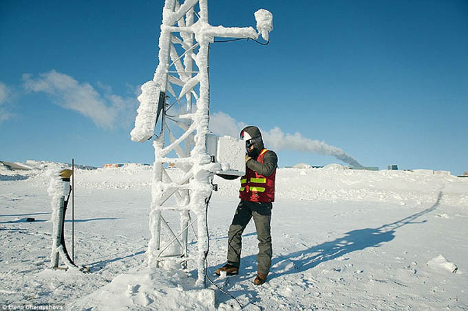 Một đường hầm kín, dài 900 mét, được mệnh danh là "Hành lang Bắc Cực", cho phép công nhân đi lại giữa trại và khu mỏ mà không phải chịu lạnh trong mùa đông.